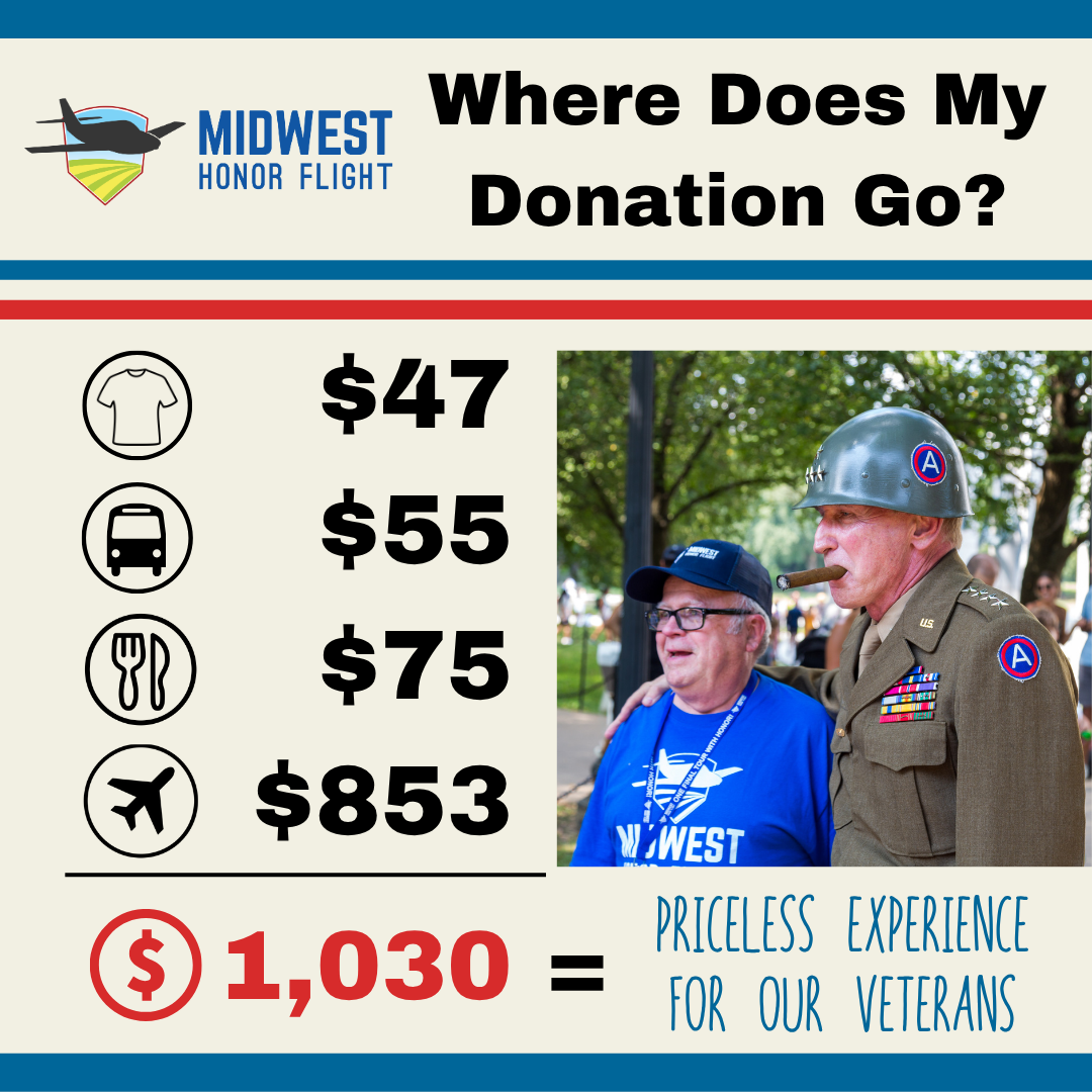Midwest Honor Flight is an official 501(c)(3) non-profit (EIN: 82-0995083). All donations to 501(c)(3) organizations are tax-deductible as allowed by law.